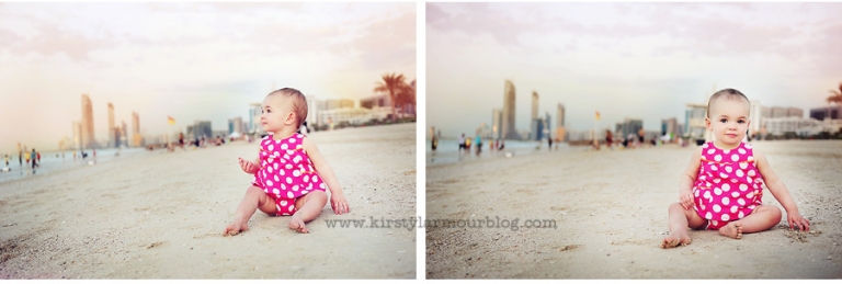 Isn’t she just adorable – and check out the beautiful Abu Dhabi sunset – these are the kind of pictures that will remind her forever that this is where she lived right then, right as she turned 1